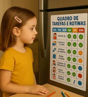 Um quadro de tarefas e rotinas é muito importante para o desenvolvimento da criança, organização e antecipação é fundamental para uma rotina saudável.